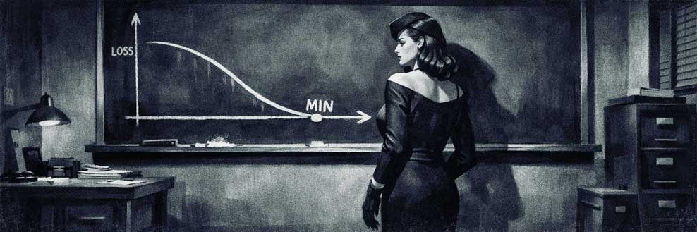 Loss is just the starting signal. Gradient descent takes that signal and tweaks weights to make the next guess closer. Over thousands of steps, she shifts from random noise to useful output.